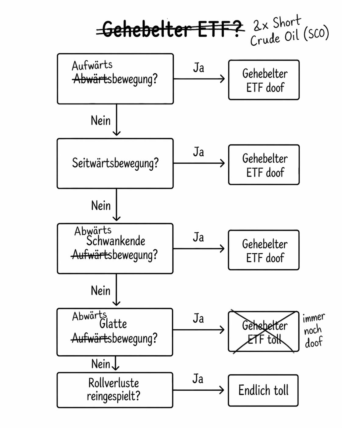 Wer noch Lust hat, kann im zweiten Teil erfahren, warum ich gerade wieder über dieses Thema gestolpert bin. Spoiler: Es gibt doch tatsächlich einen zweifach gehebelten Short ETF auf den Ölpreis. Und falls die Frage aufkommt: Natürlich fasse ich auf die Herdplatte und shorte das Ding.