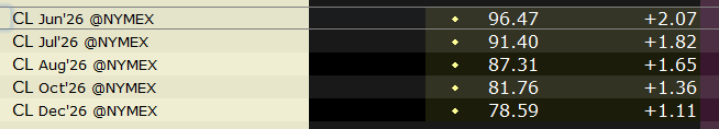 Er ist demnach short positioniert und gewinnt bei fallenden Preisen. Problematisch ist allerdings, dass sich die WTI-Futures aktuell in Backwardation befinden. Das bedeutet, dass kurzfristig fällige Kontrakte teurer sind, als weiter in der Zukunft liegende, wie folgendes Beispiel zeigt: