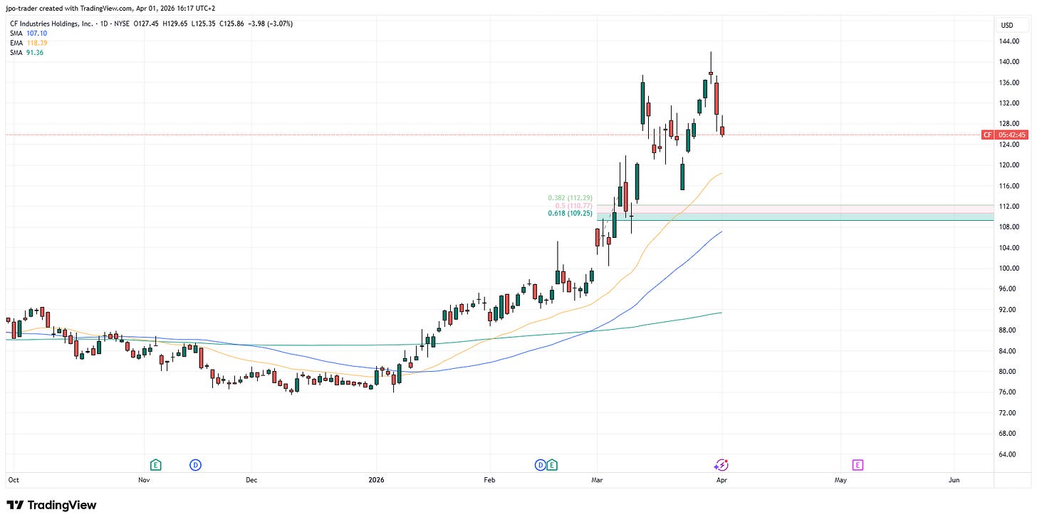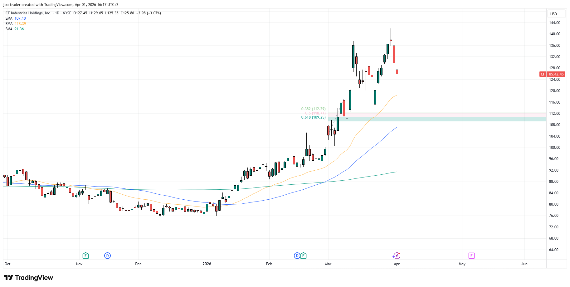 Macht es vor diesem Hintergrund Sinn, noch in Produzenten von Stickstoffdünger zu investieren? Antwort: ein klares Jein. Die Idee hatten nämlich schon andere. So hat sich der Aktienkurs von CF Industries, einem der großen US-Produzenten, seit Jahresbeginn sehr stark entwickelt.