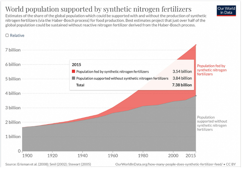 Wichtig ist auch noch zu wissen, dass Dünger die Ertragskraft pro Hektar deutlich steigert. So hat beispielsweise eine Langzeitstudie herausgefunden, dass Stickstoffdüngung den Getreideertrag im Mittel von 3.099 auf 5.163 Kilogramm pro Hektar erhöhte. Interessant in diesem Zusammenhang ist auch die Aussage, dass ein sehr großer Teil der Weltbevölkerung dauerhaft nicht ohne stickstoffhaltige Dünger ernährt werden könnte.