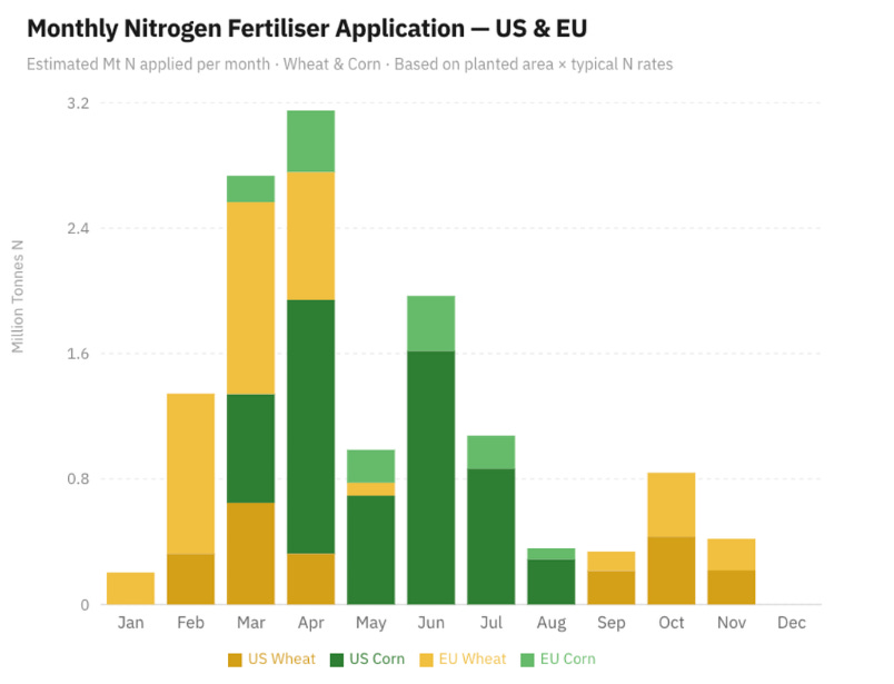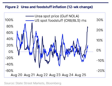 Kommen wir zurück zu den Landwirten und zu unseren familiären Wurzeln. Leider steht ihnen das Wasser bis zum Hals. Ihre Hauptkostenträger – Diesel und Dünger – sind explodiert. Weiterhin ist wichtig zu wissen, dass der derzeitige Mangel an Dünger nicht einfach wieder aufgeholt werden kann, falls die Straße von Hormus demnächst wieder öffnet. Die Pflanzsaison beginnt jetzt, und der Dünger wird vor allem im April gebraucht.