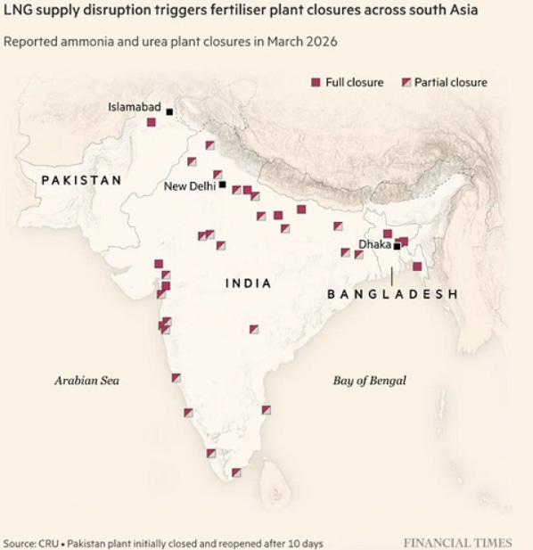 Zusätzlich fehlt dem Weltmarkt Dünger, der in großen Mengen direkt am Golf produziert wird. Ein erheblicher Teil der weltweiten Harnstoff-Exporte stammt aus dieser Region. Sollte entgegen meiner Erwartung die Straße von Hormus zeitnah wieder offen sein, bleibt weiterhin die Tatsache bestehen, dass ein nicht geringer Teil der Gas- und Düngerinfrastruktur zerstört worden ist.
